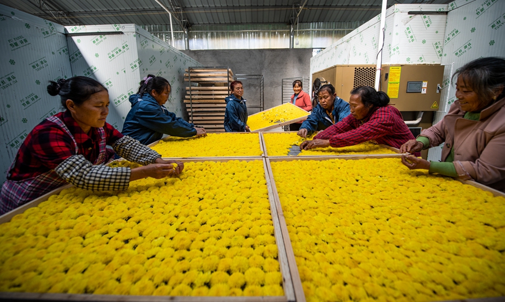 村民在分拣菊花