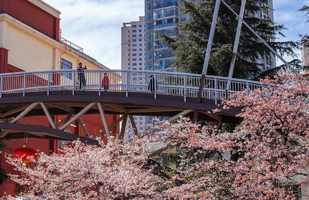 樱花从水城河六盘水市实验二中旁一直到凉都大剧院一带,从三月中旬到四月中旬分时段开放,吸引了不少市民及摄影爱好者慕名而来,赏美景、拍美照,感受春日的浪漫与惬意。(文/图 杨展凌)