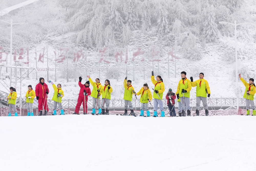 12月22日,贵州省六盘水市钟山区梅花山国际滑雪场正式开始试营业。一大早,来自六盘水市钟山区第二实验小学的38名学生与香港鸭脷洲街坊学校的5名教师与22名学生成为滑雪场第一批滑雪者。在滑雪场,大家兴奋地穿上滑雪装备,戴上护目镜,踏上滑雪板,开始了他们的滑雪之旅。
