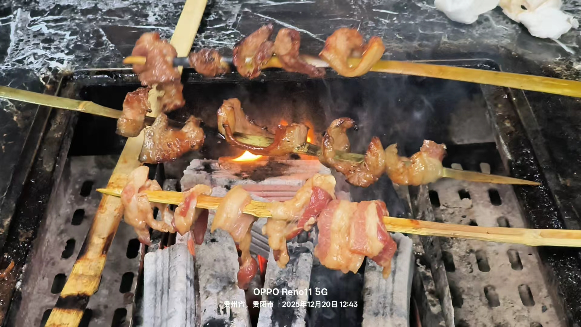 香味扑鼻的竹签烤肉。