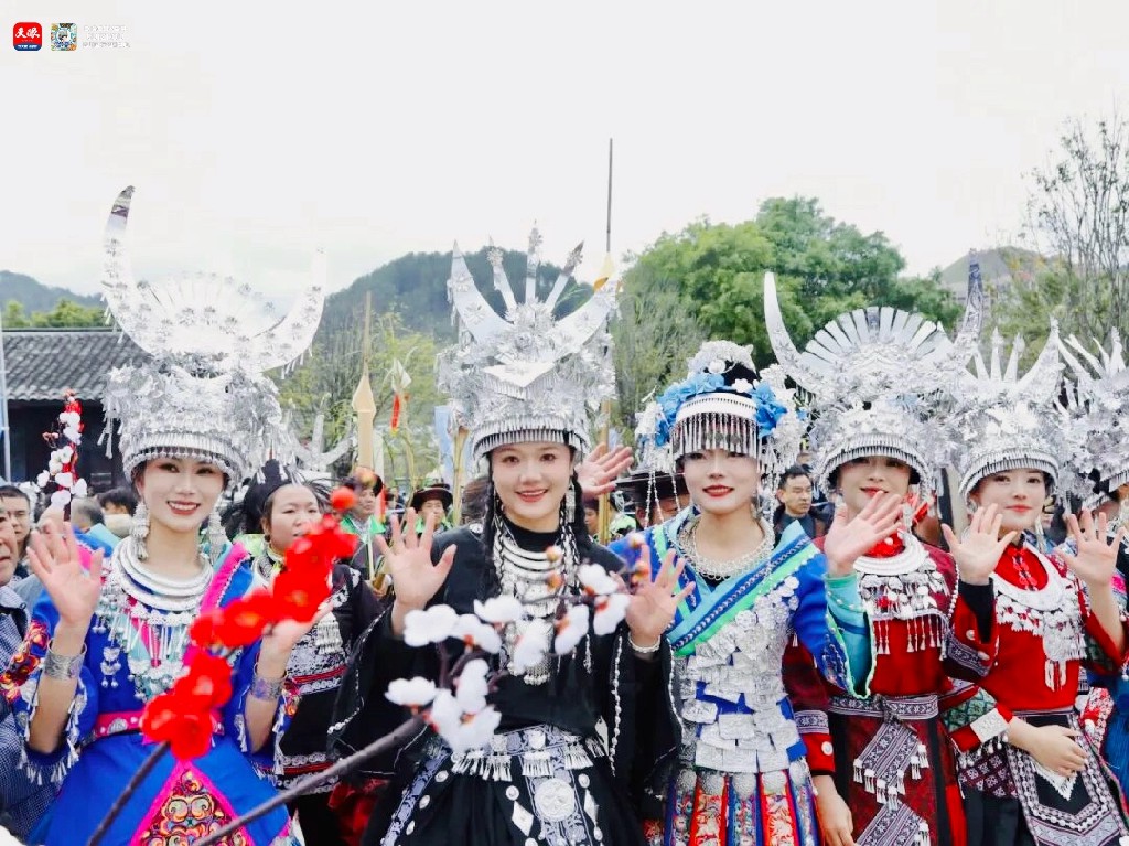 服饰与文化元素构成了多彩的画卷。水族服饰上的马尾绣纹样细密如星,瑶族衣襟上的传统图腾神秘古朴,布依族纹样清新雅致,苗族银饰随着步伐摇曳生辉。巡游中,铿锵的锣鼓与悠扬的芦笙声交织,奏响了节日的乐章。