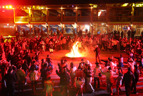 游客参加篝火晚会