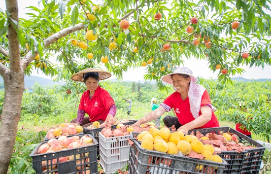 正在帮果园吆喝卖桃的村副主任黄宗淦说,春赏花,夏摘果,果园吸引了不少县内外游客前来采摘旅游,也拉动了当地餐饮、美食等消费。乡邻村民也有了种植精品水果增收和发展石洞旅游的愿望。