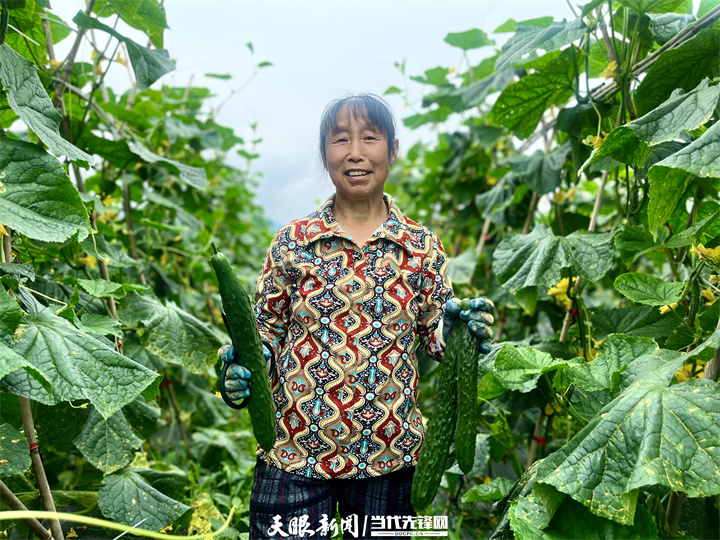 江口县坝盘镇挂扣村挂扣坝区,务工群众采摘黄瓜。