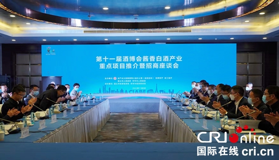 国际在线贵州消息:11月8日,第十一届酒博会酱香白酒产业重点项目推介暨招商座谈会在贵州省贵阳市召开。贵州省商务厅厅长、省投资促进局局长马雷,贵州省工业和信息化厅二级巡视员朱蓓,毕节市委常委、市人民政府副市长张华伟,遵义市人民政府副市长李旭,以及贵州酱香白酒产区有关负责人与省内外白酒生产、包装、酒类商协会等企业齐聚一堂,共享白酒产业经验,共谋白酒未来发展。