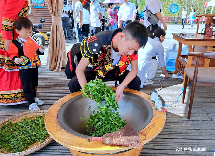彝山花谷景区内的手工制茶表演