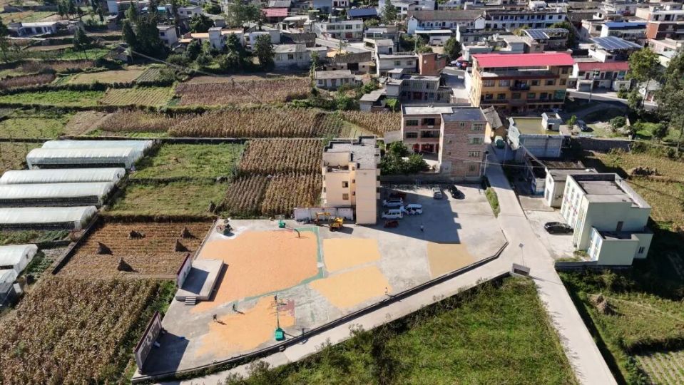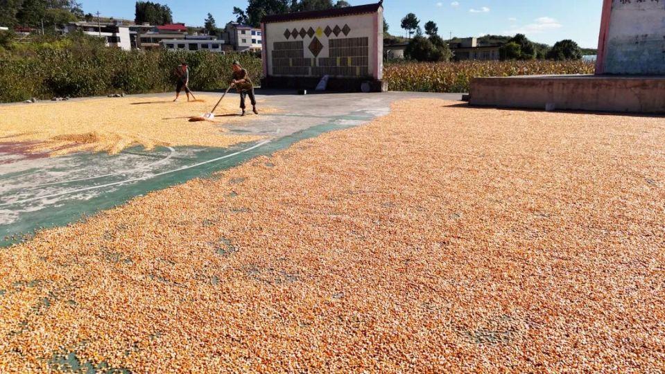 金秋时节,贵州省黔南州贵定县的山间坝子一片欢腾。德新、沿山、云雾等镇的院坝、屋顶、广场,皆被金黄的稻谷与玉米铺满,宛如大地铺上了璀璨的锦缎。家家户户的男女老少齐上阵,他们脸上洋溢着满足与喜悦,一边熟练地翻晒着作物,一边聊着今年的好收成。这一片片晾晒的粮食,不仅是作物堆叠,更是老百姓一年辛勤劳作的结晶,是对勤劳耕耘最实在的总结与肯定。(文/图 王建辉)