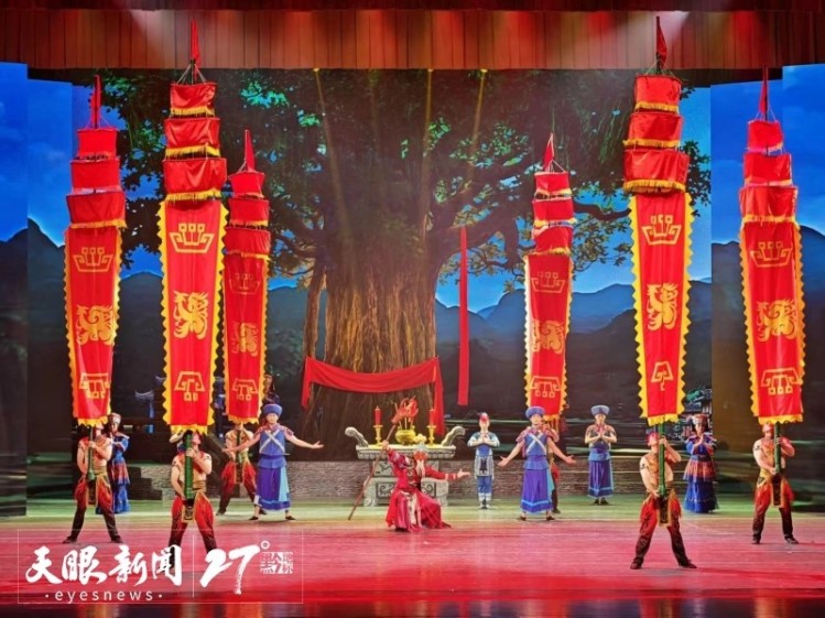 一场场剧目演出与旅游场景深度融合,在山水之间搭建起“流动的舞台”,各具特色。在传承中创新,在创新中发展,不少新创排的剧目传统与现代的结合,成为本届会演的一大亮点。