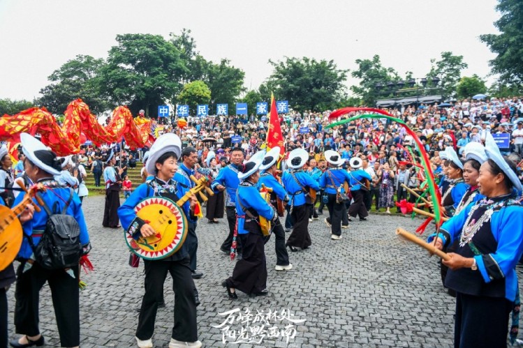 贞丰县布依族民俗文化展演迎客。(图/刘朝富)