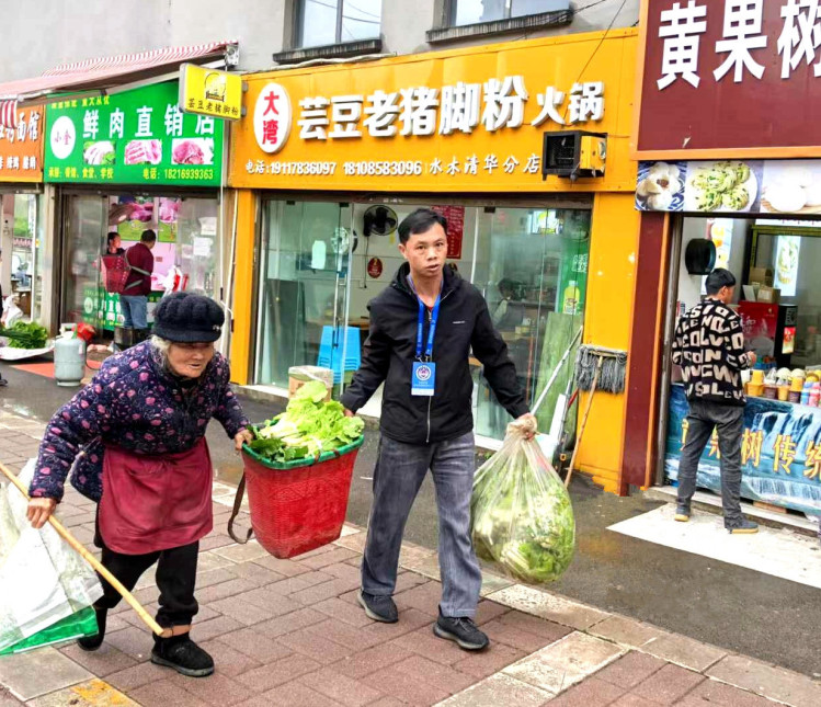 城市管理者与老人沟通后,帮助老人将蔬菜搬送到适合摆摊设点的位置进行售卖
