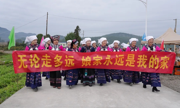 节日现场,身着蜡染服饰、头戴银饰的布依儿女,手捧米酒、红鸡蛋,热情迎接远道而归的“姑妈”们回家过节。