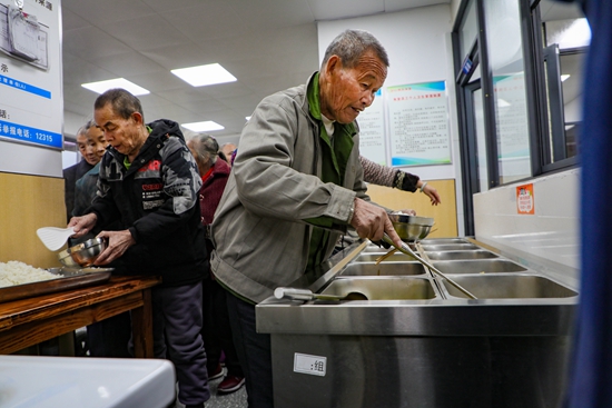 “自己做饭太麻烦了,买一块豆腐3块钱,一把青菜最低2块5,还要买油盐酱醋。我腰不好,弯腰炒菜太费劲。食堂的饭菜营养均衡,价格比自己做还划算,我和老伴天天来。”杨艳菊说。
