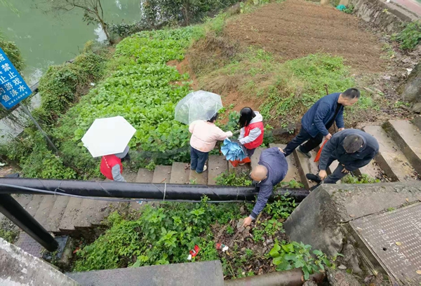 施秉县白垛乡工作人员清理河道垃圾