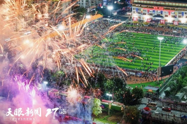 “村BA”依托全网曝光超1000亿次的影响力,将苗族反排木鼓舞、侗族大歌等节目打造为赛事亮点,今年赛事期间非遗体验区接待游客超10万人次。“村T”秀举办534场,全网播放量突破150亿,吸引游客285万人次,实现旅游综合收入5.7亿元,实现“一场秀带火一条链”。同时,非遗也深度赋能“村马”“村歌”等品牌活动,通过多元实践推动“指尖技艺”向“指尖经济”的转化,实现区域发展与文化传承双向奔赴。
