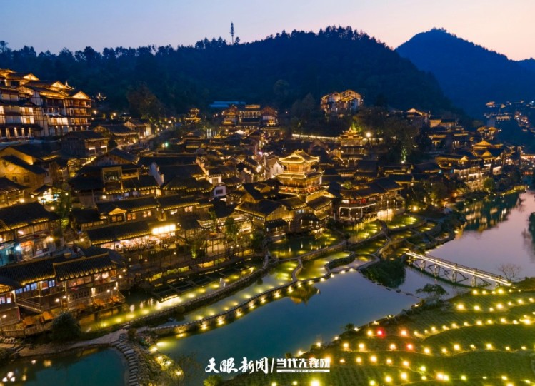 2025年11月29日,遵义市播州区乌江寨景区夜景美如画。