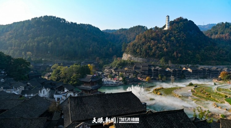 清晨,薄雾漫过寨河,吊脚楼的轮廓在朦胧中若隐若现,阳光穿透云层洒在水面,波光粼粼与古寨的吊脚楼相映,成为游客拍照打卡的热门场景。游客沿着青石板路漫步,或乘乌篷船游览寨河,沉浸式感受古寨的冬日韵味。