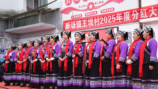 2月4日,贵州省贵阳市乌当区新场镇王坝村的大院里格外热闹,村民们背着背篓不断从四面八方赶来,参加2025年王坝村村集体公司分红大会。