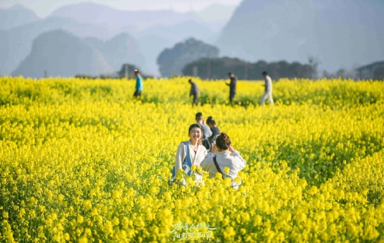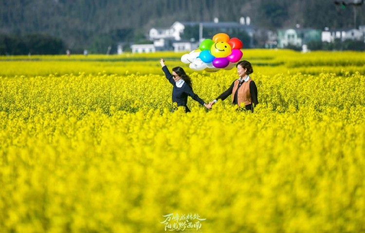 春风轻拂过油菜花海