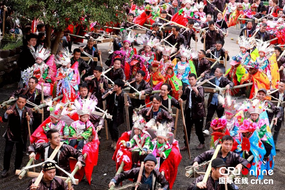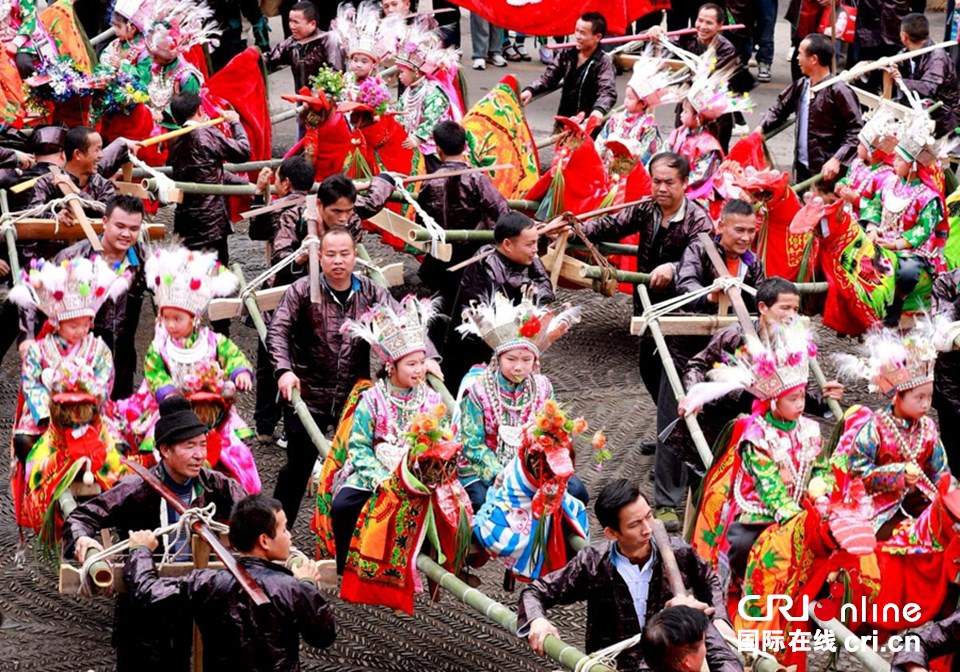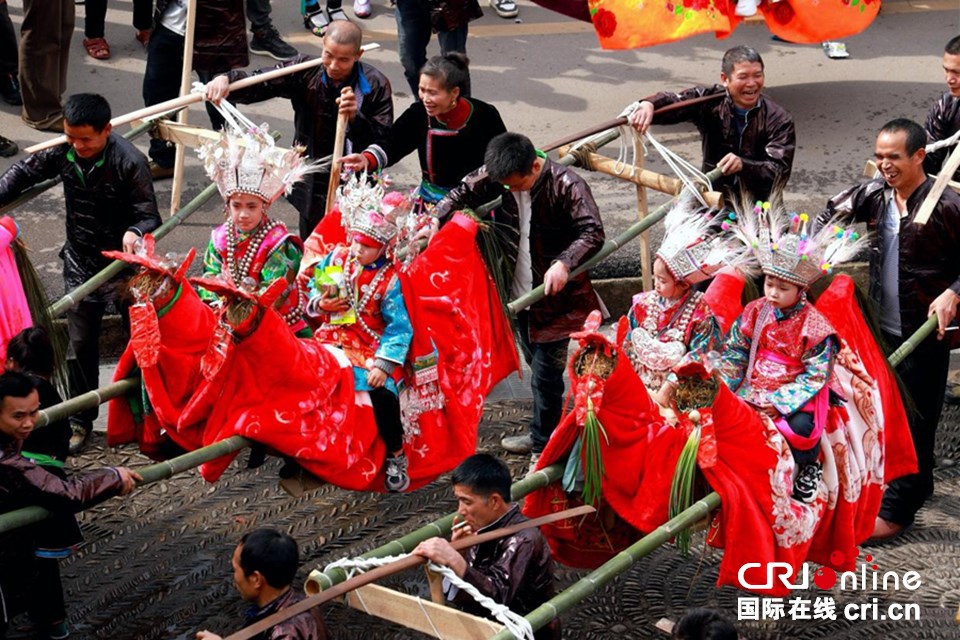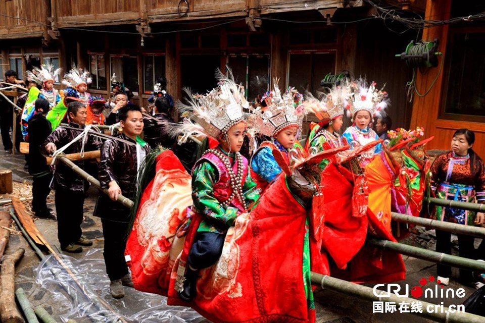 国际在线贵州消息(记者 杨展凌):2月23日(农历正月初七),为期两天的“抬官人”贺新春民俗活动在贵州省黔东南州黎平县双江镇黄岗侗寨开幕,全村男女老幼都穿着精心准备的节日盛装,笑语声声,一片喜气洋洋的景象。