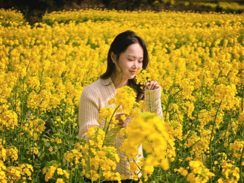 游客在油菜花海游玩