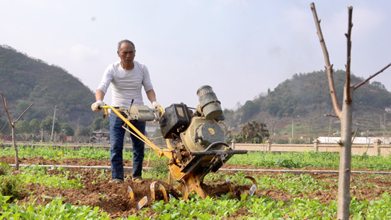 走在永乐乡水塘村的田野上,机械化的轰鸣声取代了往日的吆喝声,成为春天的主旋律。伴随着手扶耕地机的阵阵轰鸣,土地变得松软平整,村民们手持锄头开沟起垄,再将树苗仔细地栽进精心打理的沟垄之中。