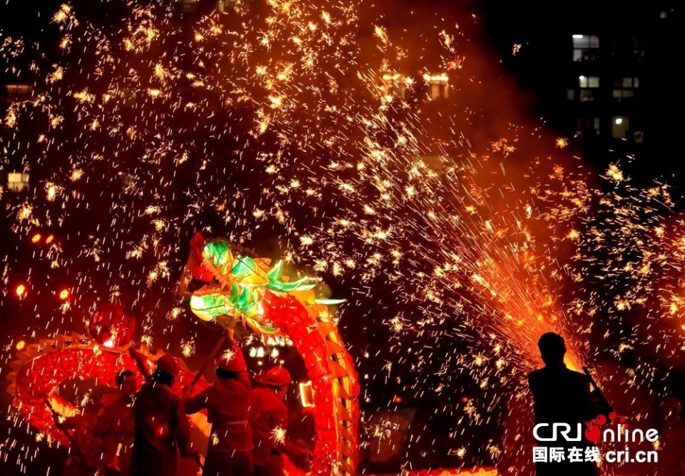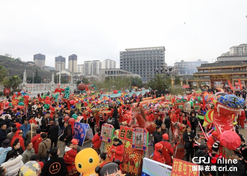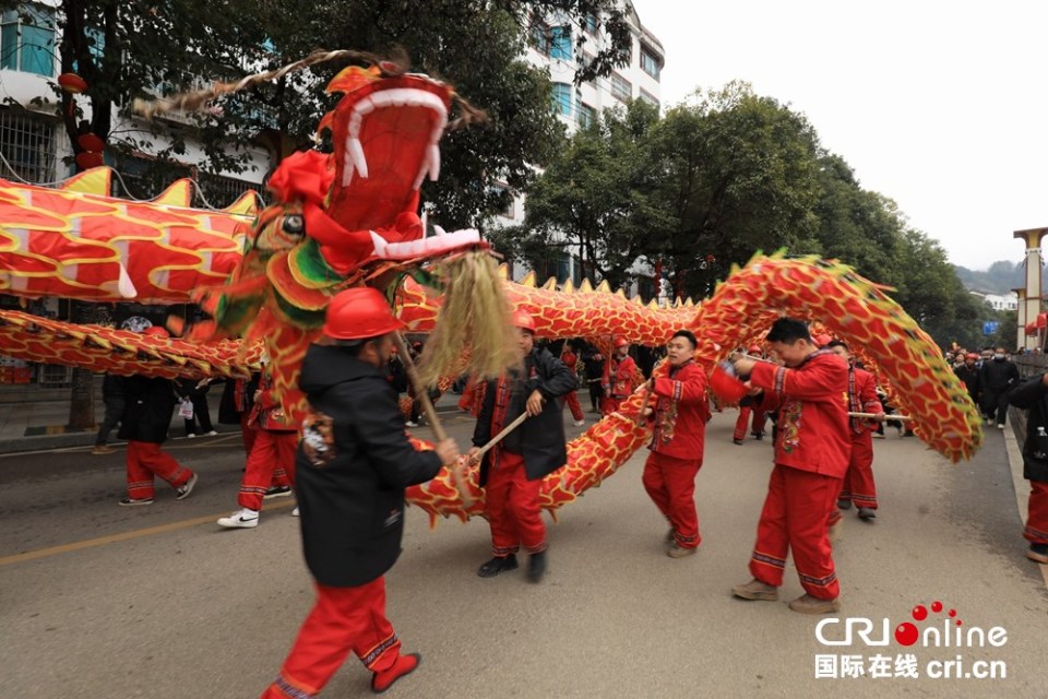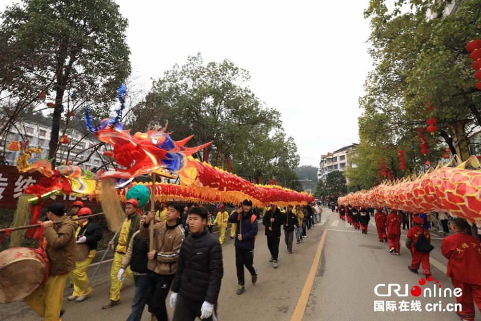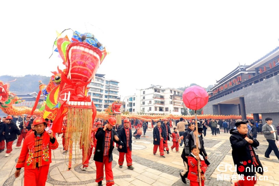 国际在线贵州消息(记者 杨展凌):3月2日(农历正月十四),贵州省黔东南州台江县热闹非凡,百龙祥游演与国家级非遗苗族舞龙嘘花大典启幕。活动现场,来自周边县和台江各乡镇(街道)村寨的60余条祥龙齐聚。108米长的巨龙气势磅礴,十几米的亮龙、硬龙精巧灵动,每一条都凝聚着苗家匠人的心血与祝福。舞龙者身着盛装,精神饱满,祥龙沿着主干道游演,龙身翻腾、龙首昂扬,非遗舞龙技艺尽显。街道两侧游人如织,大家纷纷用手机记录这热闹场景。