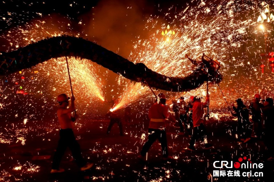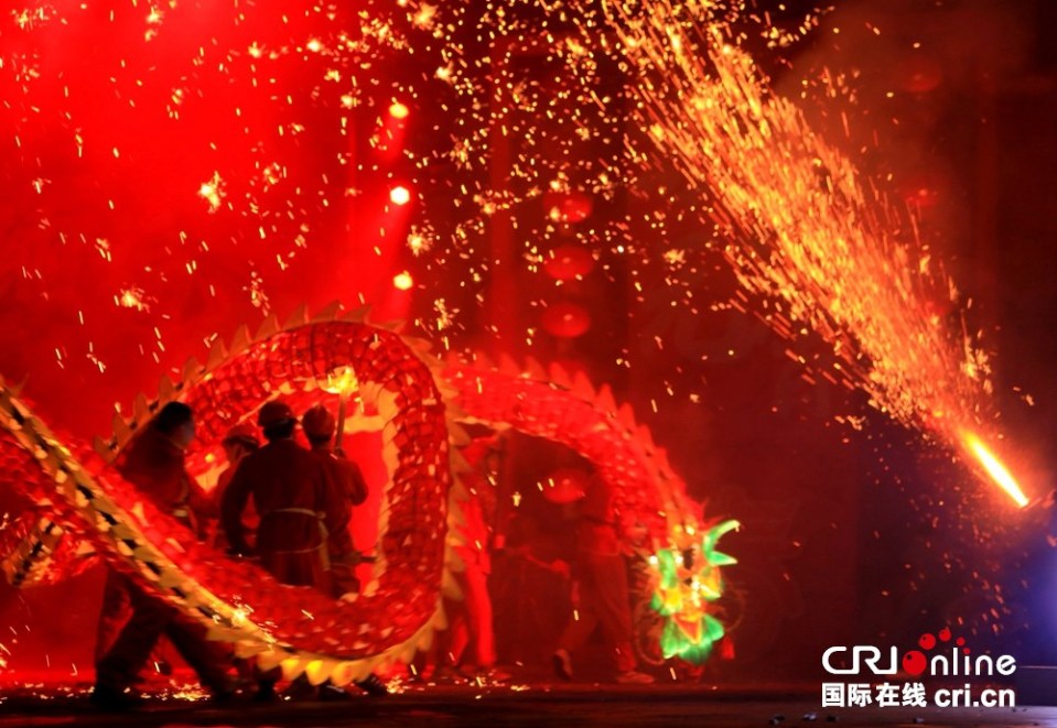 夜幕降临,台江姊妹广场成为焦点,中国·台江2026年“苗族舞龙嘘花”非遗大典正式拉开序幕。当日19时许,迎龙进苗门、祥龙点火仪式开启。随后,龙灯闹元宵、祥龙竞技、“花筒王”比拼等环节轮番上演,将现场氛围推向高潮,让游客沉浸式感受浓浓的年味与独特的民俗风情。