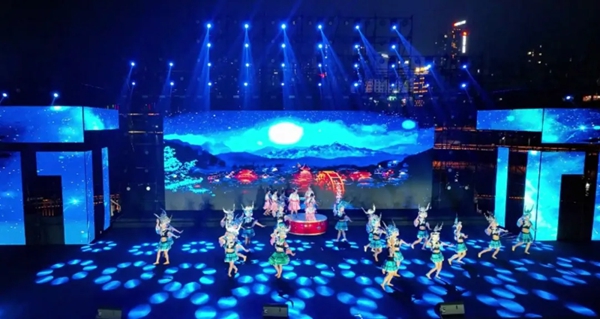夜幕下的东湖广场流光溢彩、人头攒动。舞台两侧的LED屏上,中国风灯笼与花枝图案徐徐铺展,勾勒出喜庆祥和的节日画卷。晚会在气势恢宏的序曲《万马奔腾迎春来》中拉开序幕,箫声、马头琴、古筝、琵琶、竹笛、吉他等乐器轮番奏响,歌手齐声高歌,舞者盛装起舞,瞬间点燃了现场观众的热情。