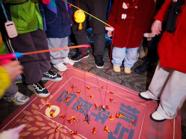 不远处的“马上圈福”游戏同样人气高涨。参与者手持套圈,瞄准心仪的福礼,屏息凝神轻轻一掷。每当套圈精准落下,人群中便爆发出阵阵欢呼。