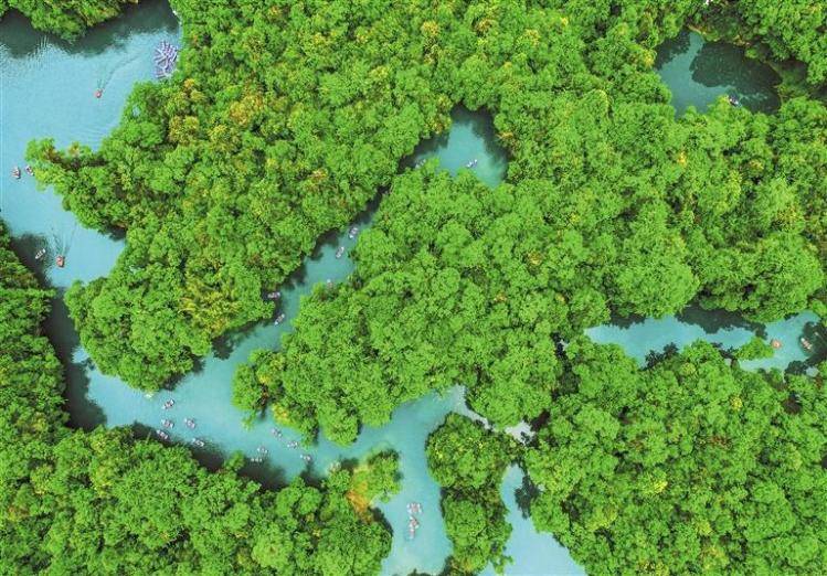 黔南州荔波县漳江景区依托喀斯特地貌与水资源优势,探索生态旅游发展模式,推动生态价值向经济效益转化。 贵州日报天眼新闻记者 陈慧 摄