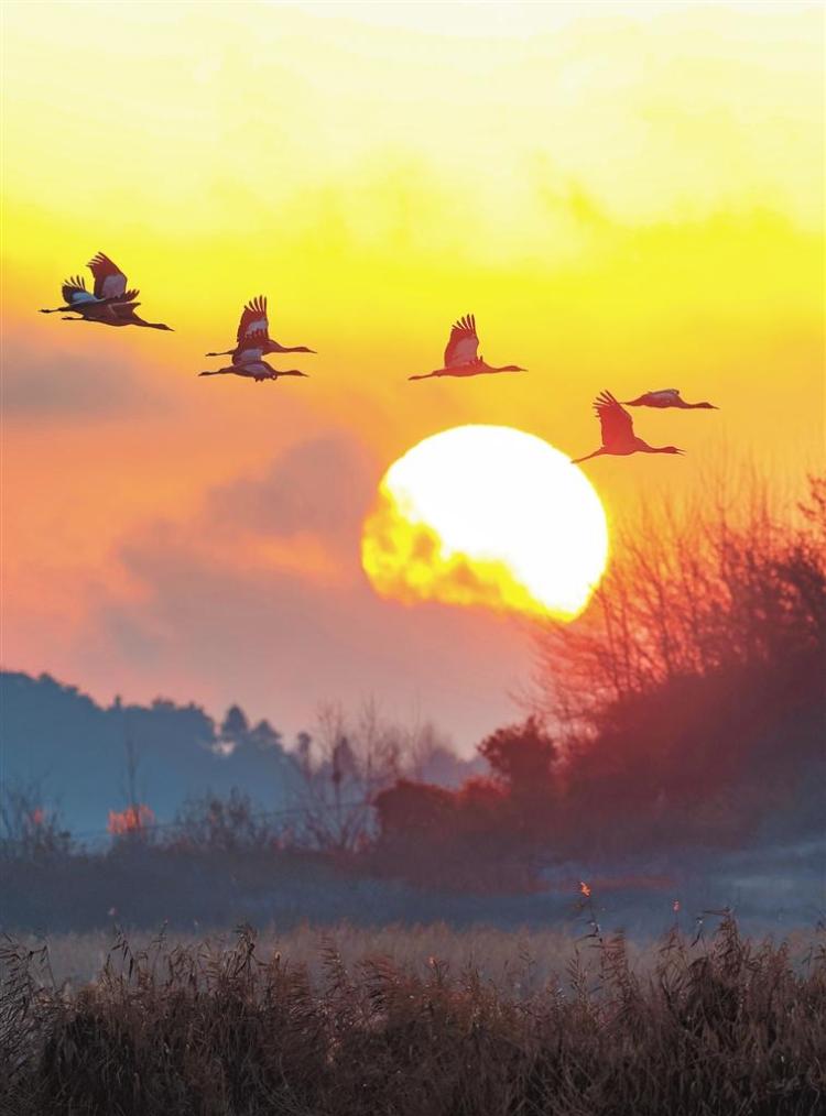 途经毕节市威宁自治县刘家巷的黑颈鹤群。 贵州日报天眼新闻记者 贾智 摄