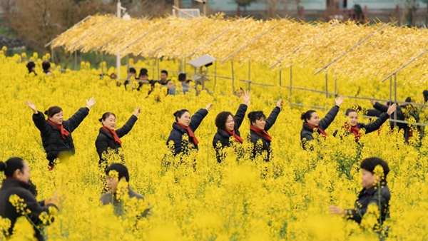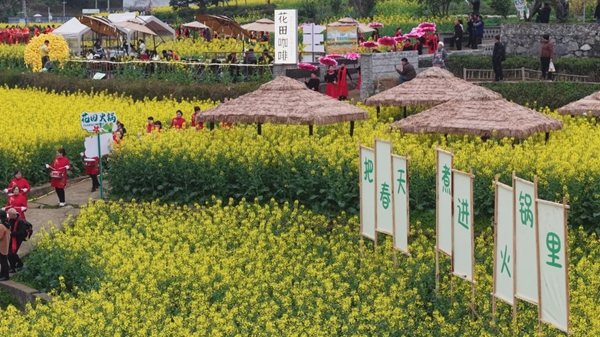 将“美丽风景”转化为“美丽经济”,是当地连续五年举办乡村旅游文化活动的深意。“每年油菜花节都会带来很多人流量,我们中午忙到两点才吃午饭。”在花海旁的“天意农庄”农家乐,老板王天意忙得脚不沾地。