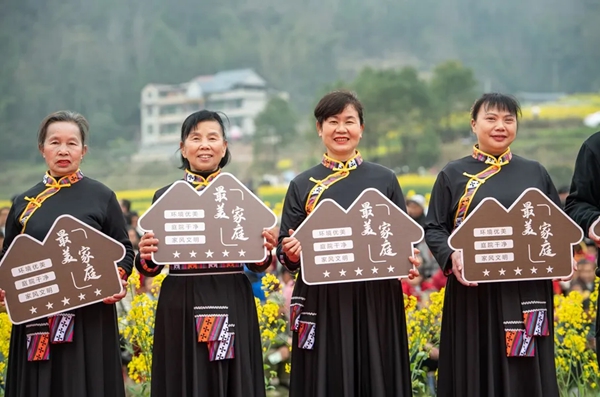 文明新潮流淌在光明村,当天活动现场还揭晓了“最美家庭”,以榜样力量引领文明新风尚。当10户“最美家庭”示范户接过奖牌时,台下的掌声与花海的浪潮交织在一起。