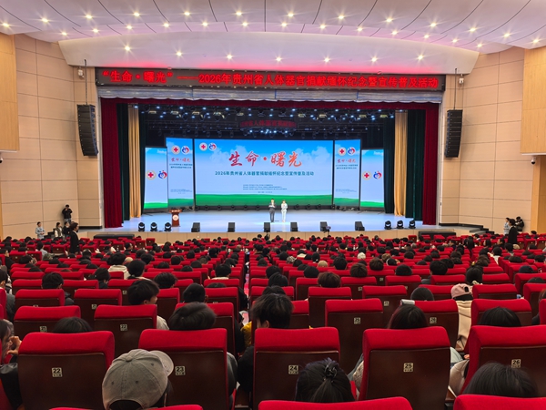 3月26日,“生命·曙光”——2026年贵州省人体器官捐献缅怀纪念暨宣传普及活动在贵州医科大学云漫湖校区大礼堂举行。来自贵州省红十字会、OPO组织(器官获取组织)代表、人体器官捐献协调员代表、捐献者家属代表、移植受者代表、志愿者及高校师生等1000余人参加活动,并向全省遗体和人体器官捐献者致以最深切的追思。