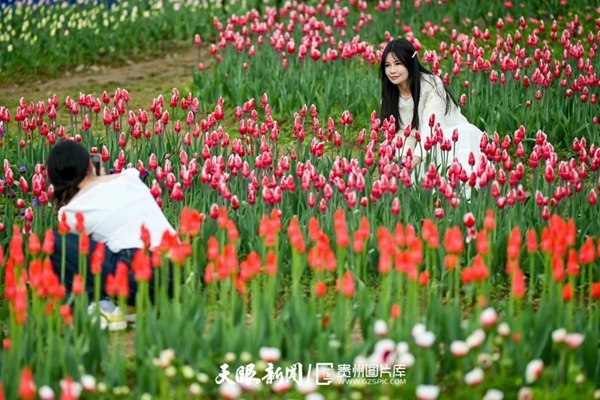 3月18日,游客在贵阳市乌当区羊昌花画小镇赏花拍照。袁福洪 摄