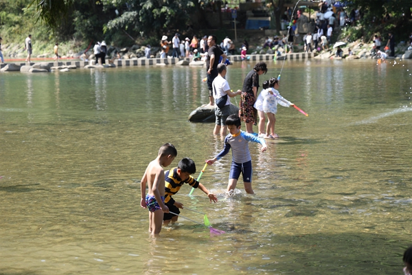 游客在大小井景区玩水