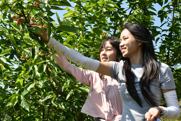游客体验樱桃采摘乐趣