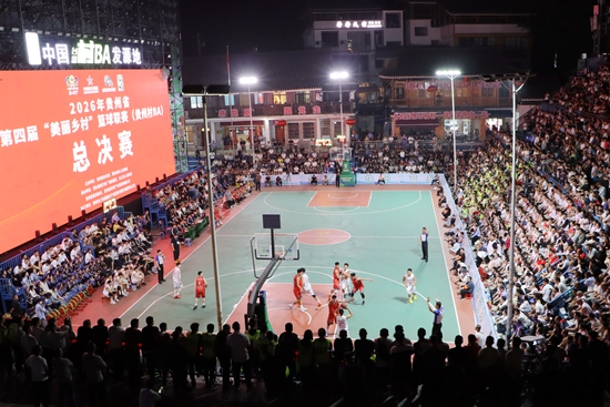 近日,2026年贵州省第四届“美丽乡村”篮球联赛总决赛在黔东南州台江县台盘村落下帷幕。赛场上,球员攻防激烈、比分紧咬、悬念拉满;看台上,观众敲锅盖、击铁盆、擂鼓呐喊,礼花纷飞、呼声震天。“奔跑吧我和我的村,打开这幸福的大门”的主题曲响彻乡村夜空,一场充满烟火气与民族风情的体育盛宴激情绽放。