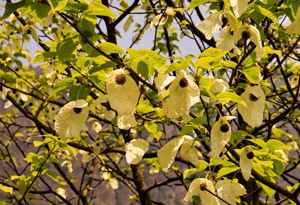 珙桐为国家一级重点保护野生植物,因其花朵形似展翅欲飞的白鸽而得名,有“植物活化石”“绿色大熊猫”之称。哈青村野生珙桐主要生长于该村乌蒙石林、老熊坪、良子上、母猪箐一带,海拔2400米至2700米的原始森林间。珙桐花盛开之际,远远望去,高大挺拔的珙桐树上,一片片洁白的苞片轻盈舒展,形似白鸽展翅,紫红色的花序宛如鸽首,绿黄的柱头恰似鸽喙,整朵花栩栩如生,风一吹,万千花朵随风摇曳,仿佛千万只白鸽栖息林间、振翅欲飞。(文/图 聂康)