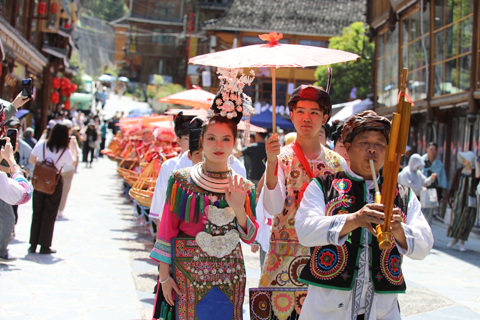 肇兴侗寨举行传统婚俗活动